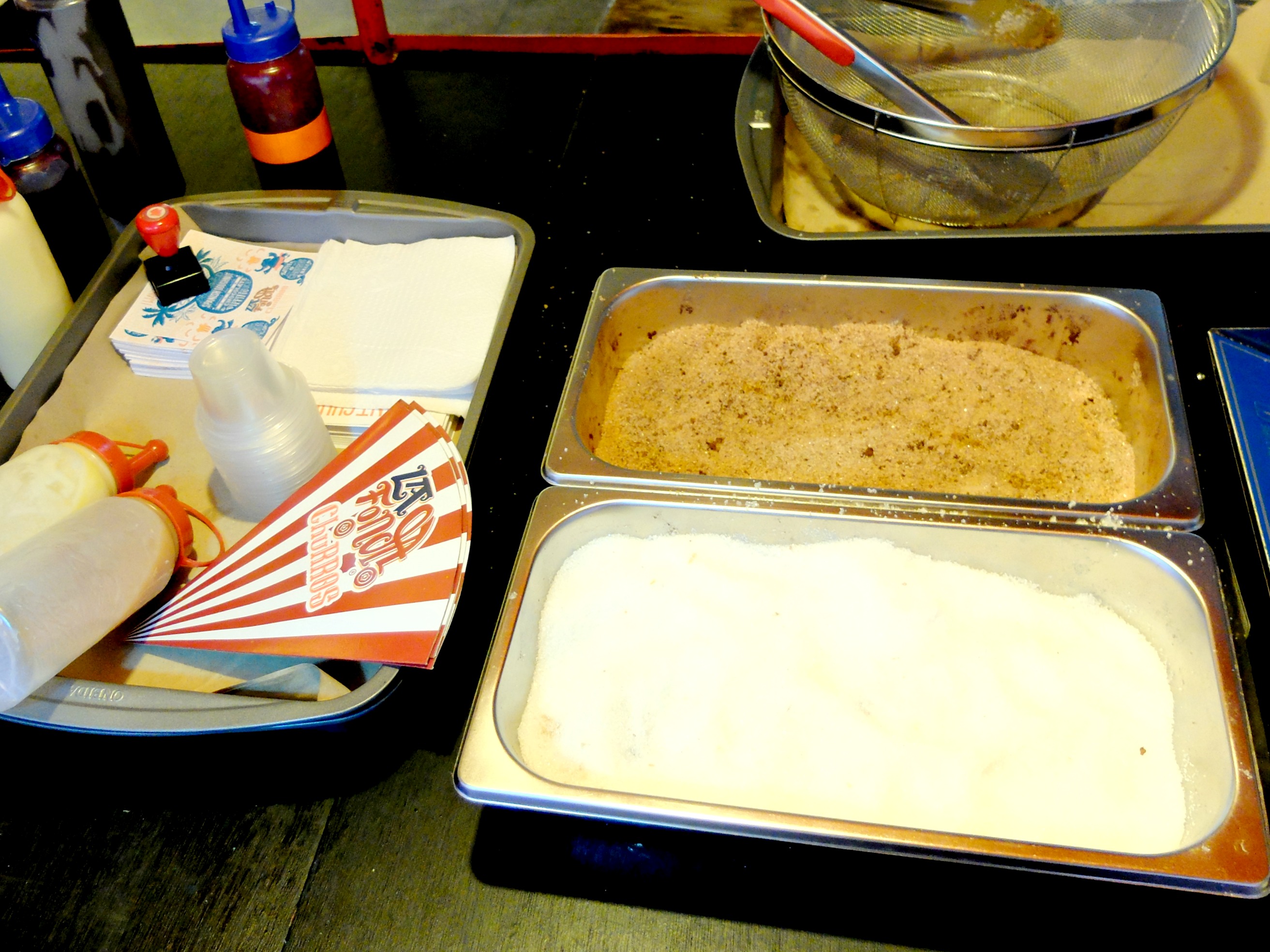 And once the frying part is finish, the churros will be sprinkled with sugar. There are 2 kind of sugar here : cinnamon sugar & white sugar. We went for cinnamon instead.