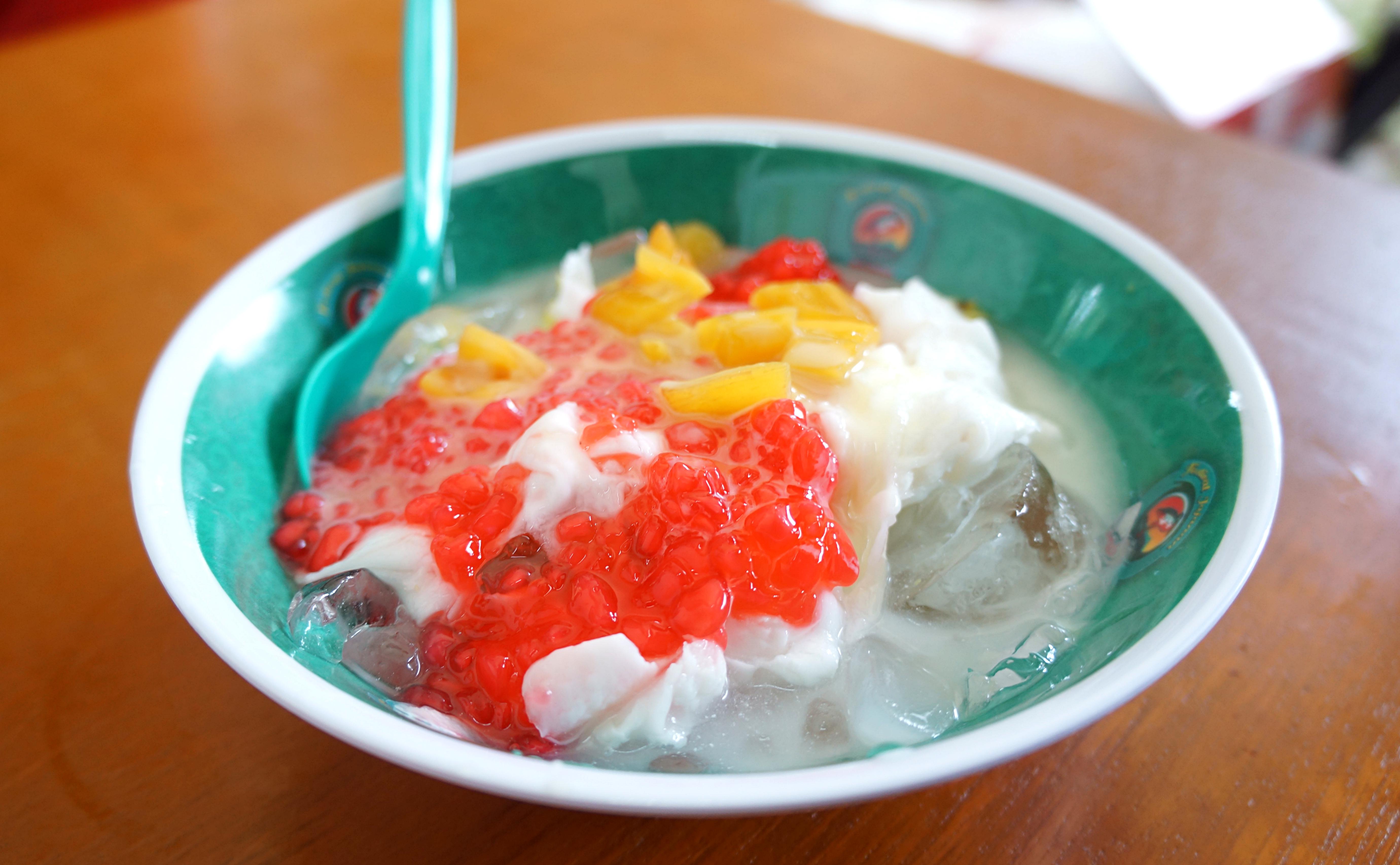 This one is my favorite! There are avocado, jackfruits, coconut, some jelly, served with coconut milk, sweetened condensed milk and ice cube. Es Campur is one of the most popular dessert in Indonesia. Especially during Ramadan. People usually have it as a treat for breaking the fast. Sooo refreshing! And not too sweet – which is perfect for us.