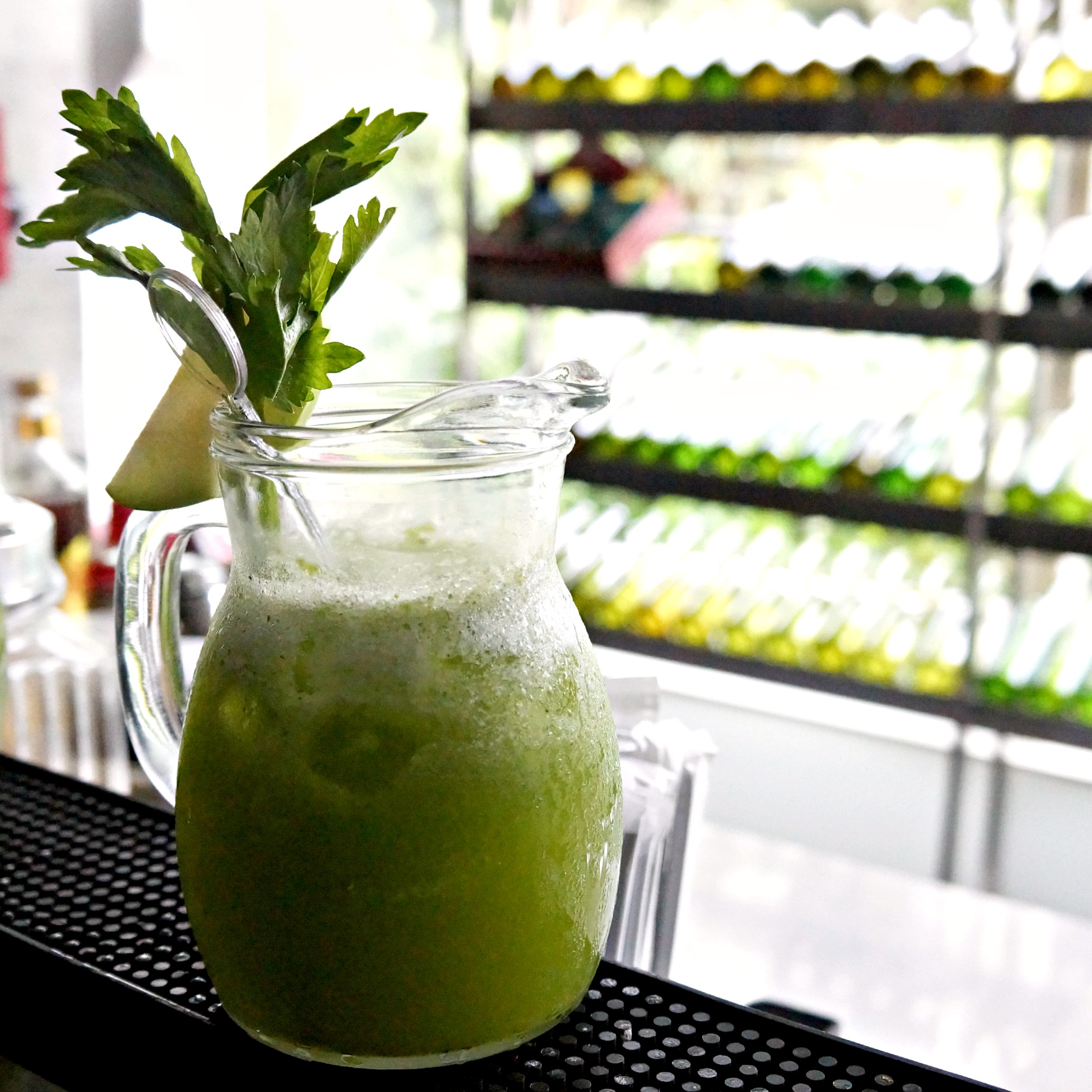 And here’s mine. Blue Sparkling, which is basically made from blue curacao, vodka, and soda.