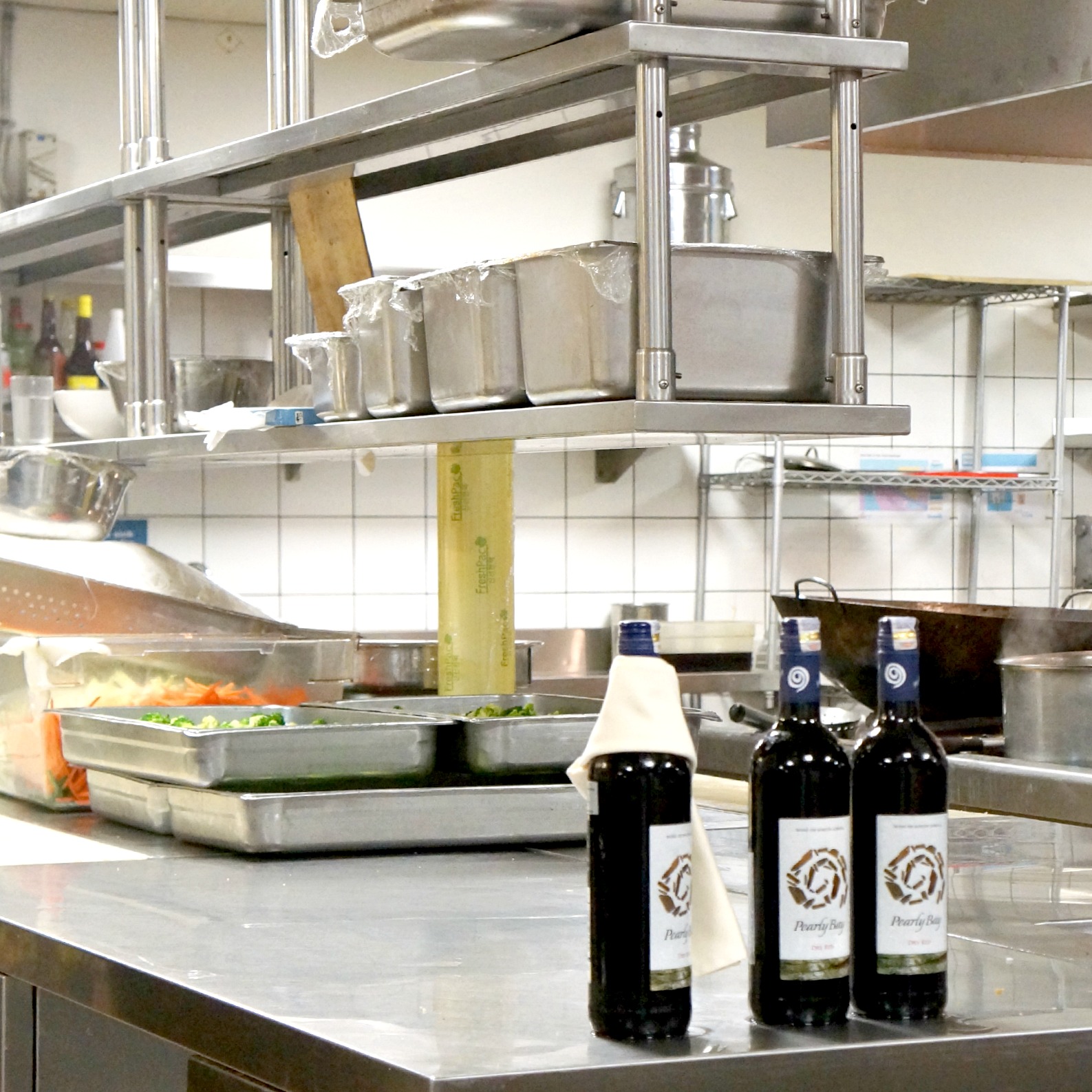 It was paired with this Pearly Bay Dry White, a refreshing dry wine with a crisp lemony flavor. Finishes dry and tangy in the mouth.